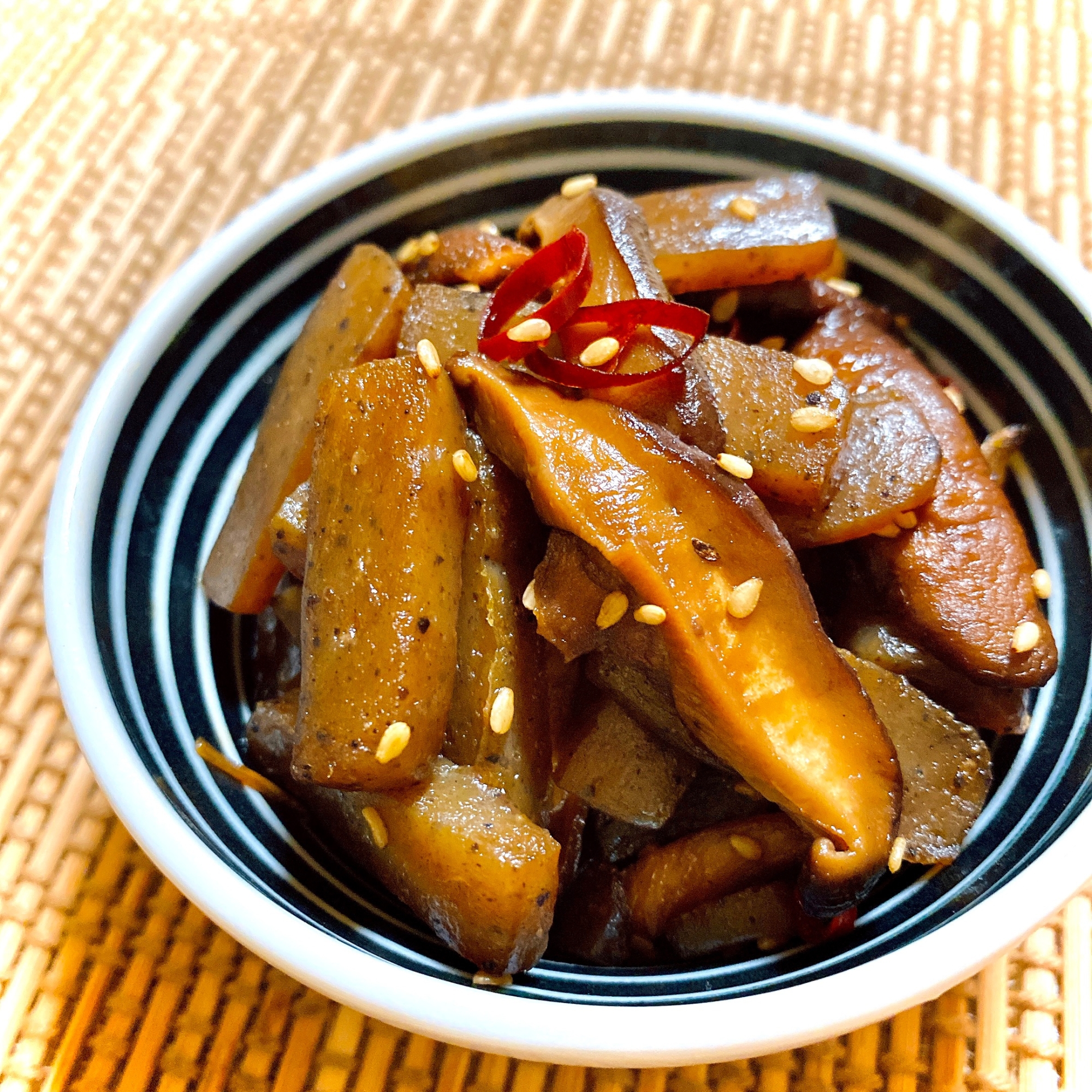 こんにゃくのピリ辛炒めの写真素材